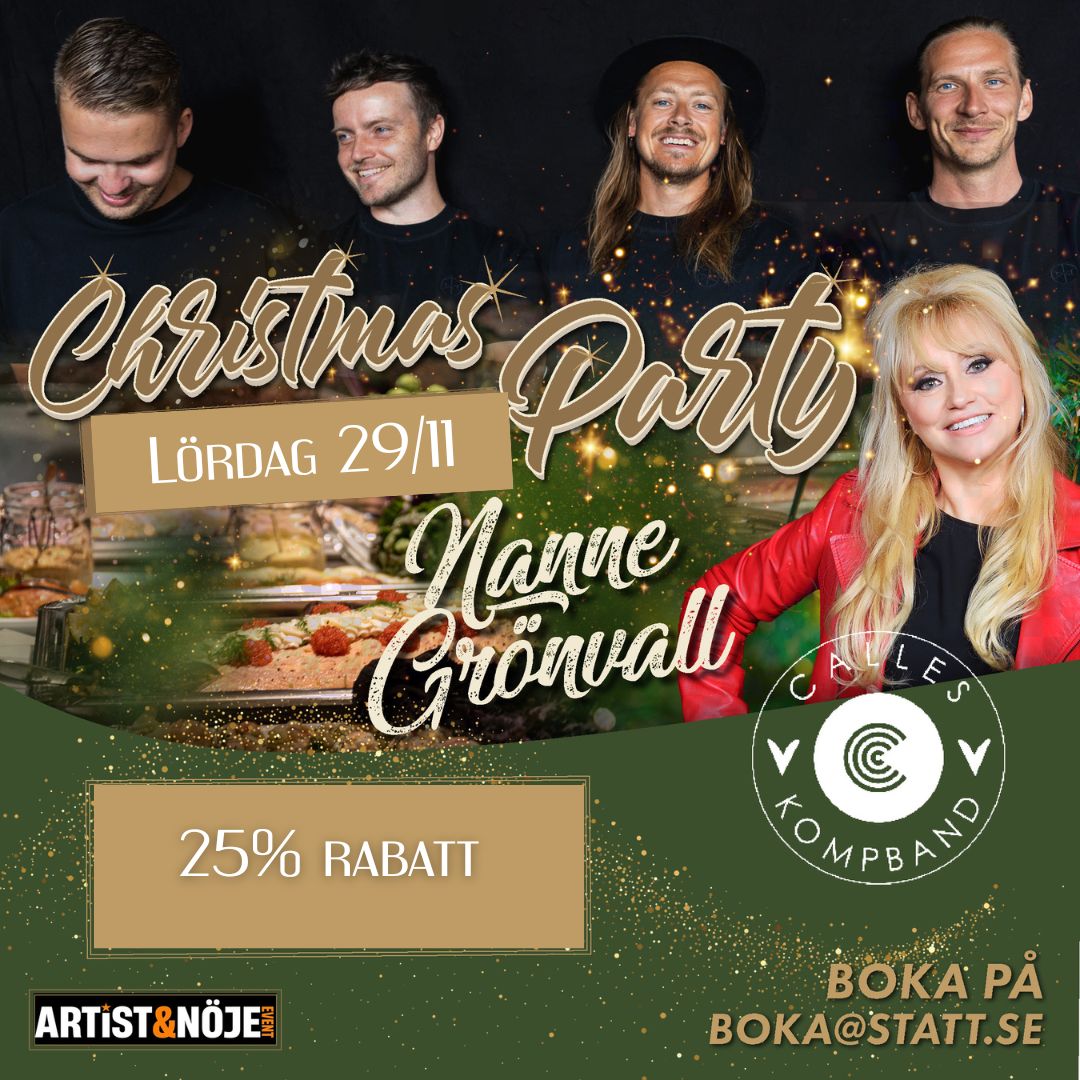 I paketet ingår: Christmas Party med Nanne Grönwall och Calles Kompband, traditionellt julbord, fördrink, DJ, övernattning och frukostbuffé